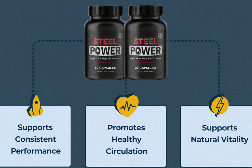 SteelPower is a premium male performance supplement formulated to support both energy and circulation — the two essential systems behind consistent performance and vitality. It’s soy-free, dairy-free, vegetarian, non-GMO, and every batch is tested by third-party labs to guarantee purity and quality. Proudly manufactured in the USA in a GMP-certified facility, SteelPower is produced using advanced technology under strict safety and hygiene standards. As always, consult your doctor before starting any new supplement, especially if you’re on medication or have an existing condition.
